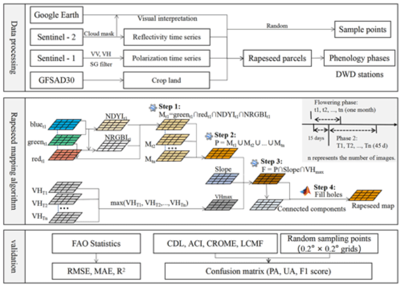 提出的基于多源数据的高分辨率油菜籽面积估算方法主要包含三部分: