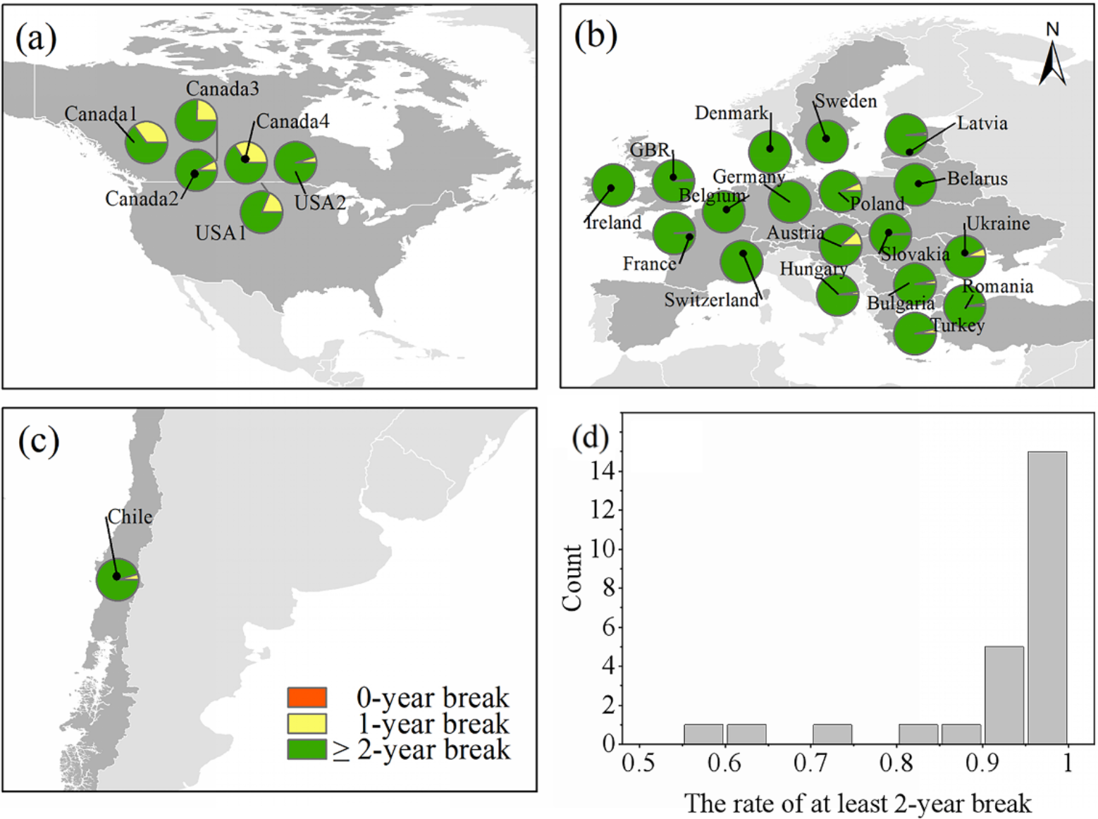 下图显示了不同国家和地区的油菜籽种植的轮作方式统计,可以发现大部分国家和地区的油菜籽种植间隔至少在2年以上。这主要是因为油菜籽的轮作方式与产量密切相关。