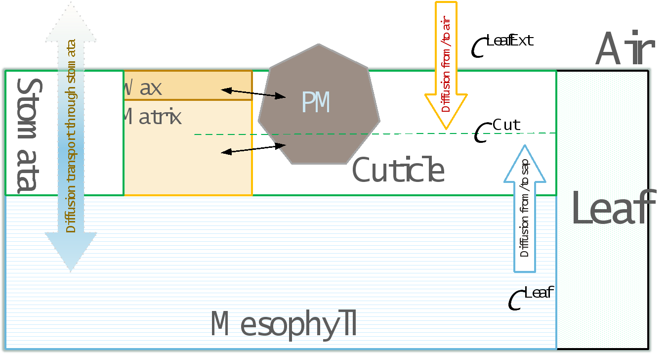 因尚未正式发表论文,恕不提供技术细节。SWAT-KM设计框架如图1所示;SWAT-KM中刻画的大气与地表间化学物质的垂向传质可参考图2;作为化学物质环境介质的植被叶片构造如图3所示。感兴趣的学术同行可与作者联系,获取《化学物质环境暴露模拟模型SWAT-KM技术文档(暂定稿)》。这里提供SWAT-KM的一般性功能介绍。