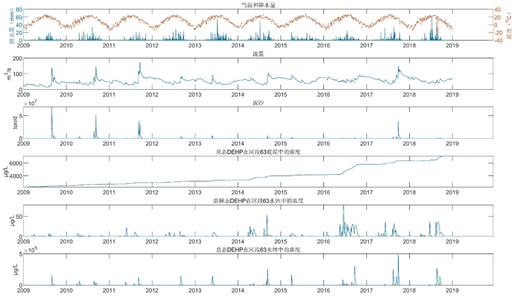 提供以子流域对应河段划分的不同河段河水、沉积物中化学物质浓度估计;